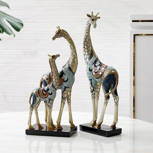 Resin LUCKY Giraffe Elk Figurine Statue Home Living Room Decor Crafts Sculpture