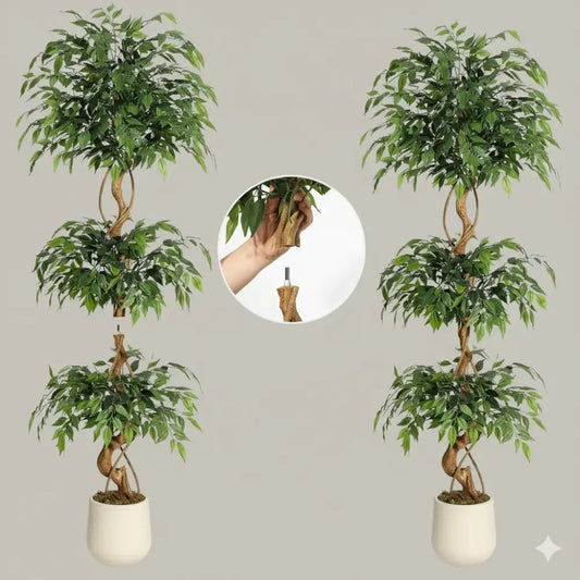Artificial Ficus Tree Silk Leaves, Vine-Wrapped Trunk