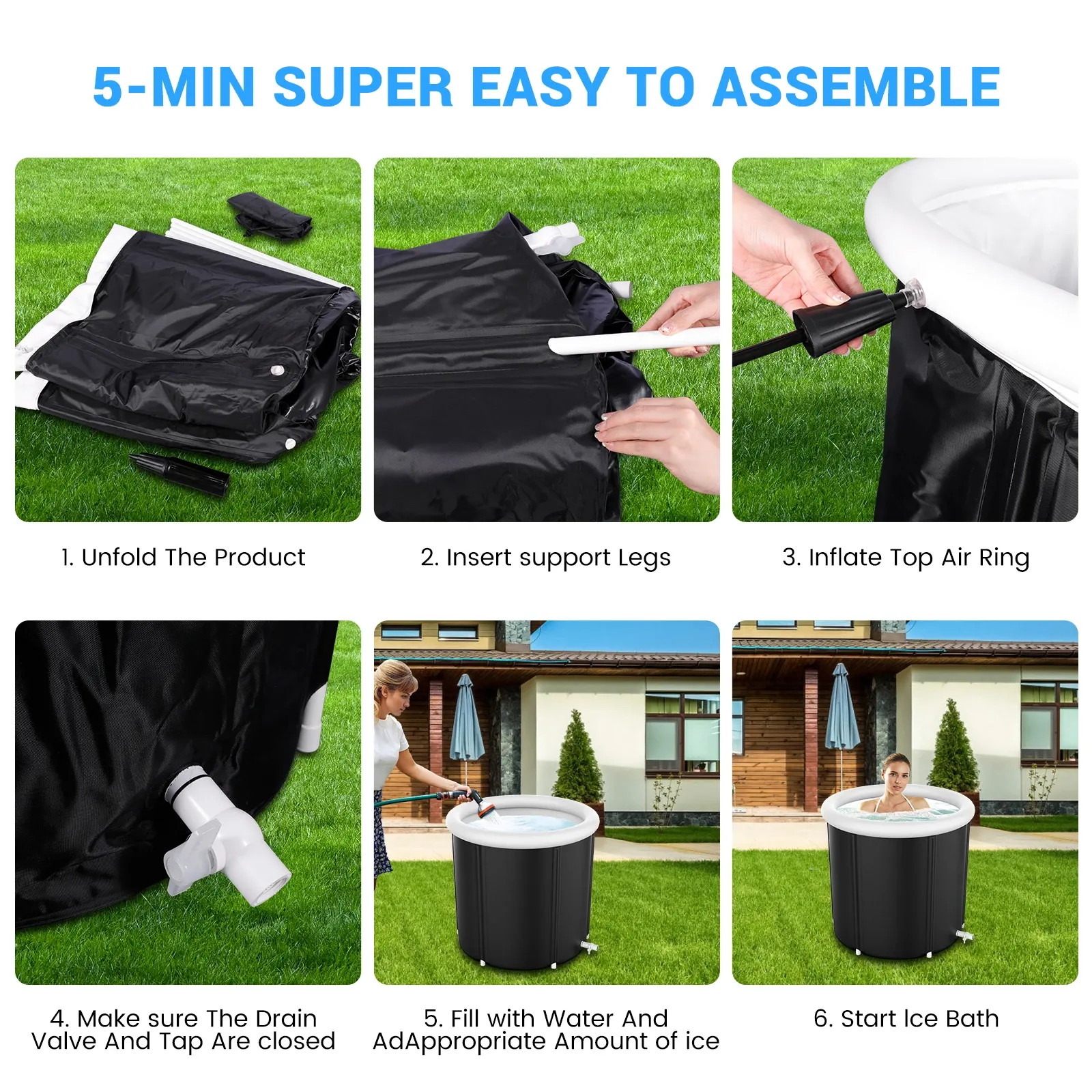 Take your post-workout recovery to the next level with this 105-Gallon Large Ice Bath Tub—specially designed for athletes and fitness enthusiasts. This portable cold plunge tub offers ample space for full-body immersion, helping reduce muscle inflammation, boost circulation, and speed up recovery after intense training.
