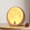 - 2 options: moon lamp with two lovers (warm light) OR cloudy mountains with deer (white light)