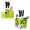 Our Ultimate Utensil Organizer helps your kitchen stay clean while keeping all your utensils and cooking tools easily accessible. The rack features safety slots for kitchen knives, hooks for hangable items, and large storage areas for silverware, cooking utensils, straws, and more. Everything your kitchen needs in one compact and convenient design!