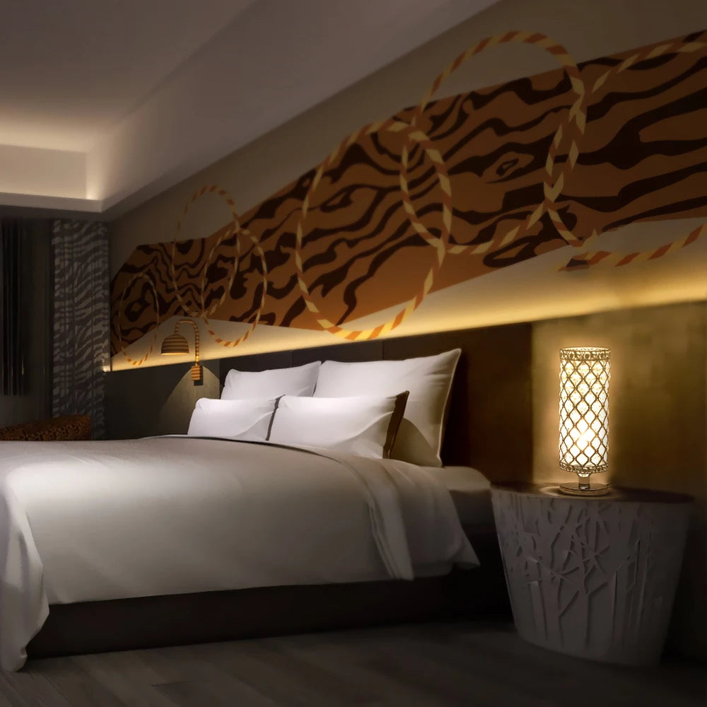 The delicate silver iron frame features an intricate hollow-carved design that complements both modern and classic decor. Designed for both beauty and practicality, the lamp includes an EVA non-slip mat on the base to protect your furniture from scratches.