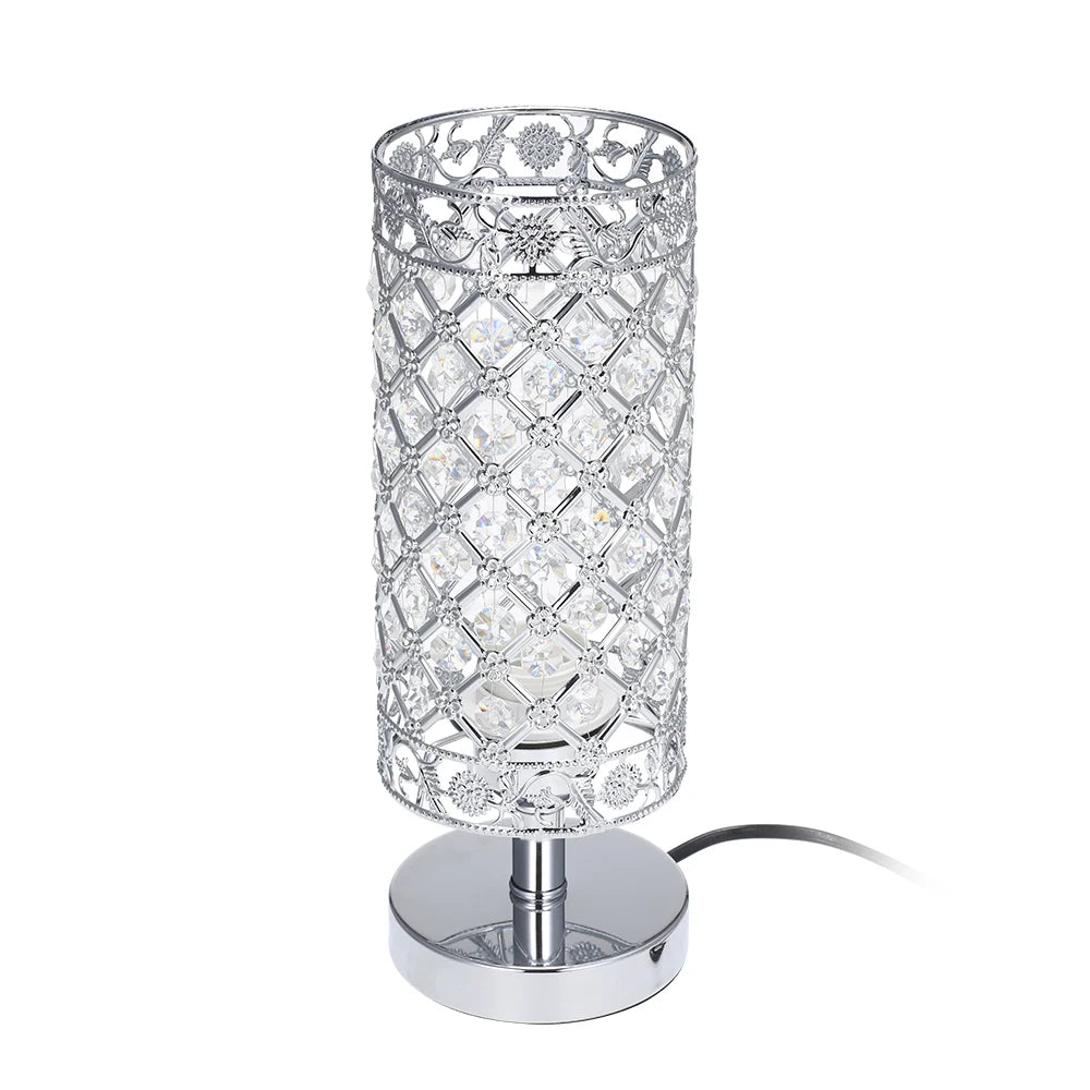 - 1 x Crystal Silver Bedside Table Lamp Decorative K5 Crystal Desk Light E26