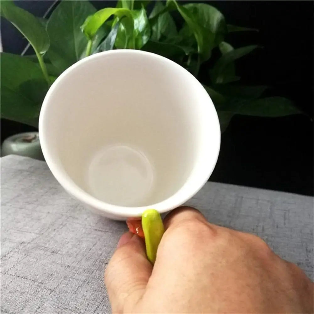The handle of this creative mug is the head of the dinosaur.  This mug adds dinosaur charm and humor to any occasion or household.