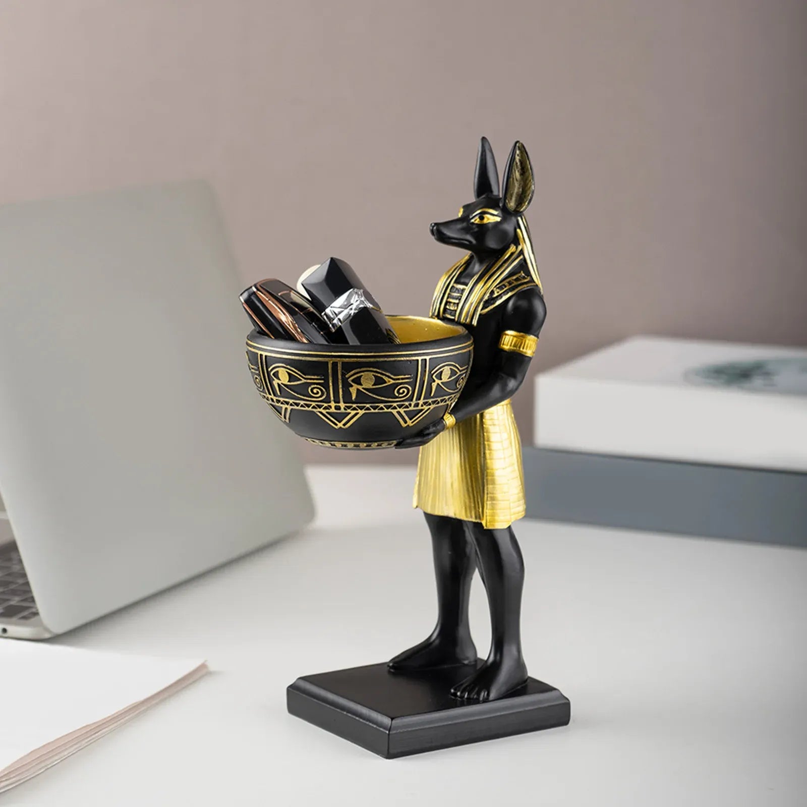 Ideal for desks, coffee tables, entryway tables, office desks, or shelves, this statue becomes an eye-catching centerpiece while keeping small items organized. It is also a unique collectible for fans of Egyptian mythology and ancient history.