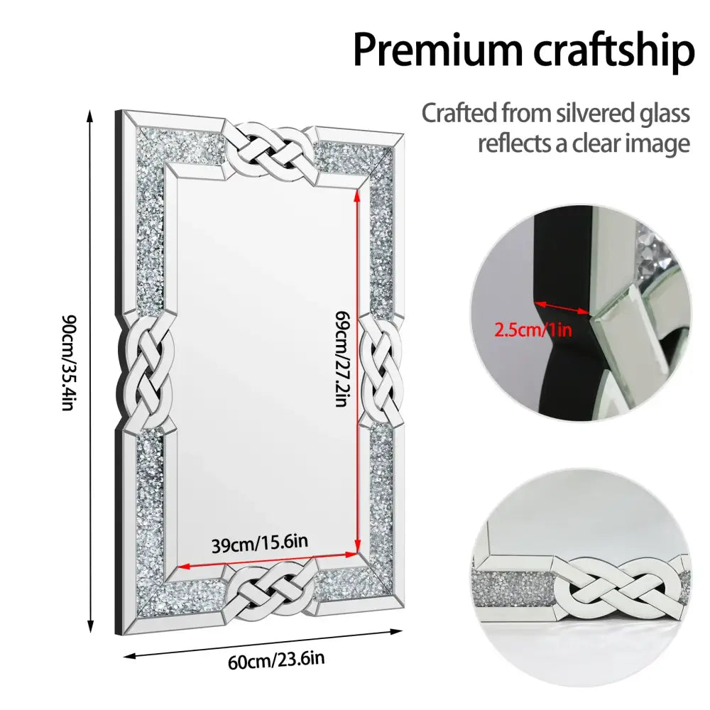 - 1 x Large Crystal Crush Diamond Mirror Silver Decorative Wall Mirror for Home