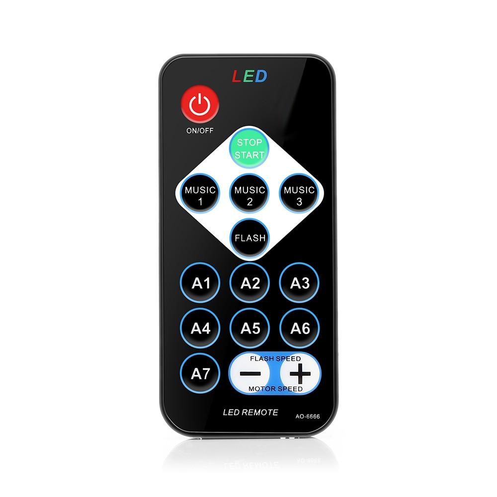 - Use the remote to change between lighting modes: burst mode, sound active mode, motor rotation mode