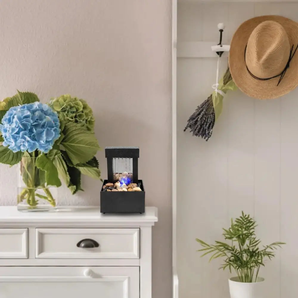 Mini Desktop Water Fountain LED Zen Meditation Waterfall with Pebbles USB or Battery Powered