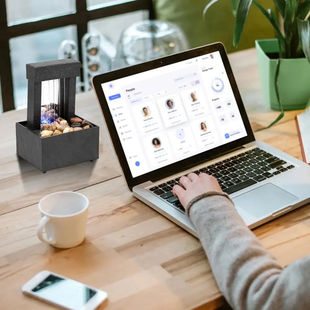 Create an oasis of calm with our Desktop Water Fountain, a unique artistic ornament that harmoniously blends running water, soft lighting, and natural elements. Designed for Relaxation and Meditation, the carefully engineered height differences create a distinctive waterfall sound that helps to soothe nerves and improve focus during yoga or sleep.Ā