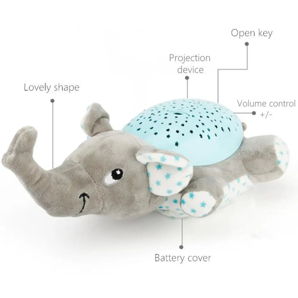 Our Musical Night Friends are a stuffed animal, a light projector, and a music box all in one! They're the perfect musical night light for children. Simply turn it on at night and watch as it projects glowing stars around the room and sings your child to sleep.
