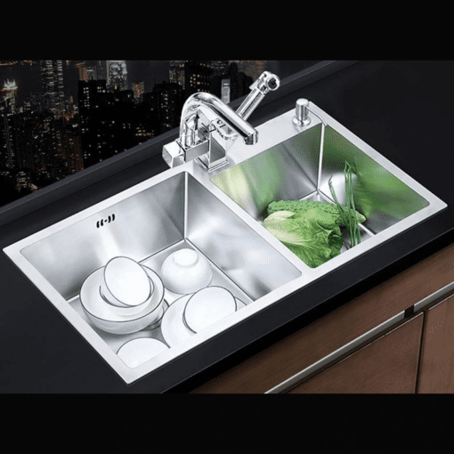 Bring efficiency and elegance to your kitchen with this 304 Stainless Steel Double Sink. Designed with two spacious bowls, it allows you to wash and rinse simultaneously, making meal prep and cleanup faster and more convenient.