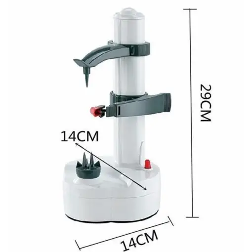 It’s an amazing automatic potato peeler that peels away potatoes, vegetables, and fruit skins in one fast, easy motion. No need to touch or hold the vegetable while this electric apple peeler is peeling.