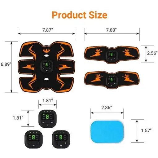 1 x Abdomen Pad 2 x Arm Pad 1 x USB Charging Cable 10 x Gel Pads (5 Default + 5 Extra) 1 x User Manual
