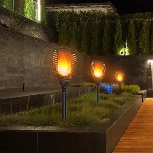 - Amazing flame effect, Waterproof Solar Powered Outdoor Garden Light Flickering Torch is the best and safest alternative to a real torch. It features realistic dancing flame effects that can definitely turn everyone to stop and stare.